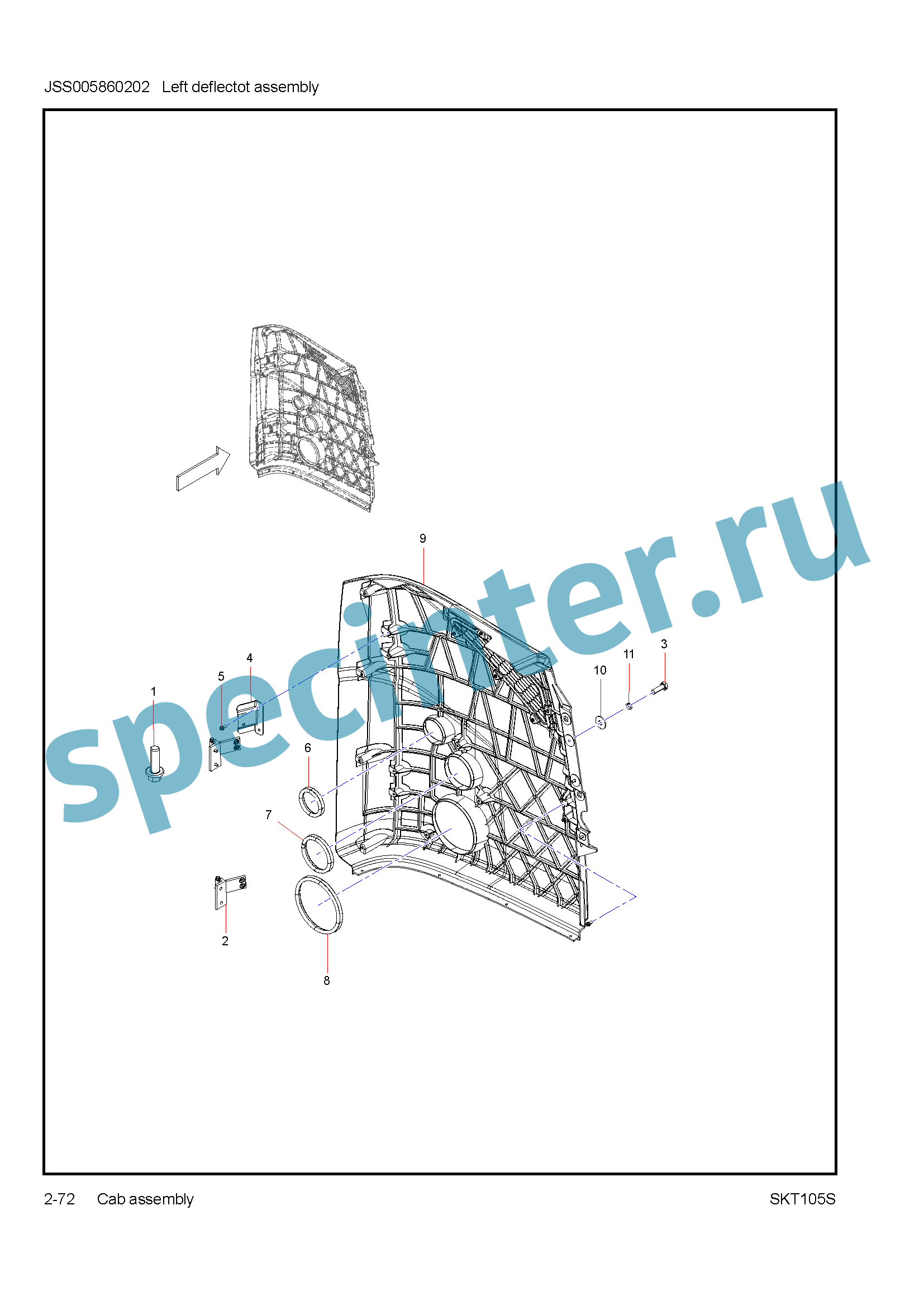 | 9 | JSS005656418 | Левый дефлектор кабины SANY SKT105S |